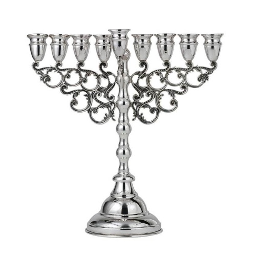 Emanuel Cylinder Menorah w/ Metal Cutout – Silver and Brass