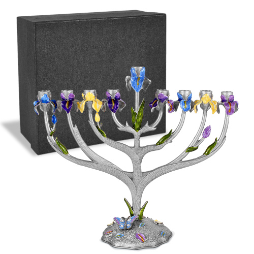 Artistic Iris Flower Jeweled Hanukkah Menorah