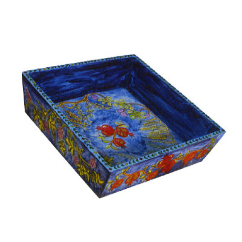 Carved Wood Matzah Plate By Emanuel – 7 Species