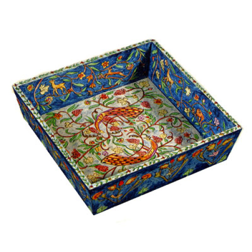Carved Wood Matzah Plate By Emanuel – Peacocks