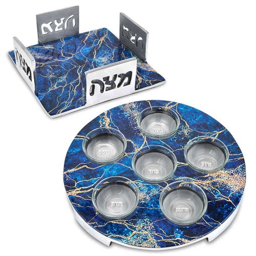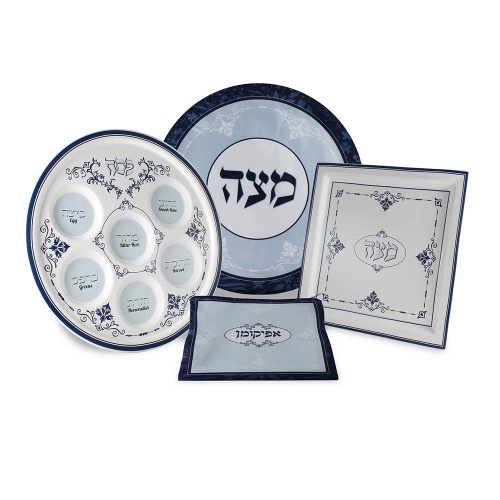 10 Piece Passover Seder Set Blue Hamsa Collection by Jessica Sporn