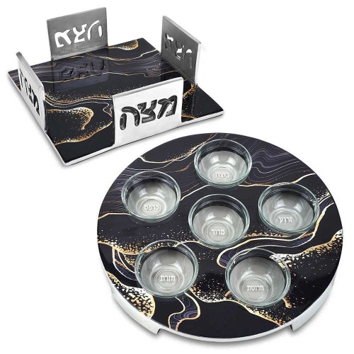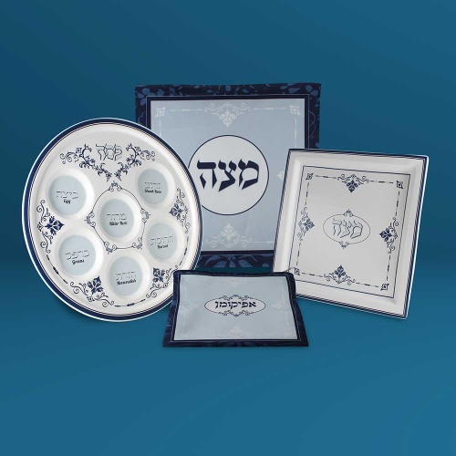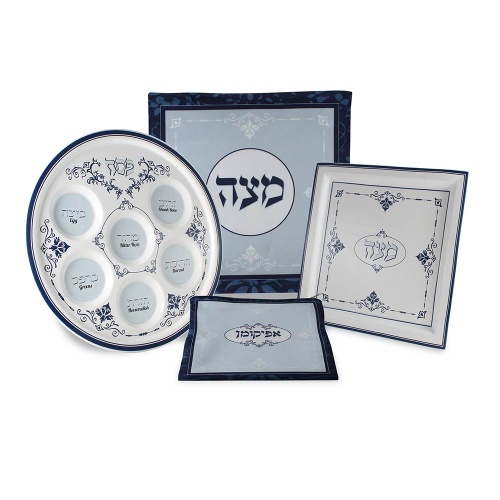 4 Pc.Set – Seder & Matzah Plate – Matzah Cover & Afikomen Bag