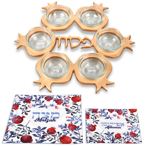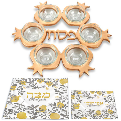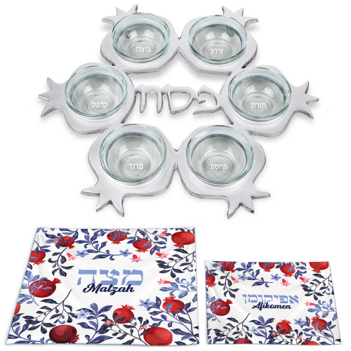 3 Piece Pomegranate Passover Seder Set – Gold/Silver