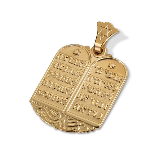 14K Gold Torah Pendant – 10 Commandments