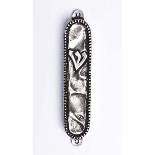 Natural Wood Mezuzah Cover with Printed Silver Shin