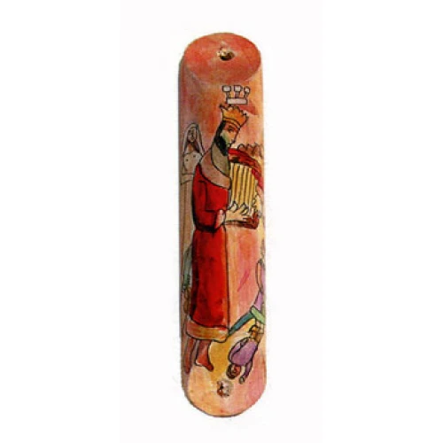 Rounded Wooden Mezuzah Cover – David and His Harp