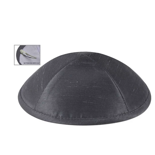 Our Raw Silk Kippot feature a modern, flatter shape for a sleek fit. Additionally, the firm lining ensures the Kippah holds its shape throughout the day. With a discreet buttonhole for easy clipping, these Kippahs stay securely in place. Furthermore, the refined edge trim, made from an additional fabric layer, adds a polished and sophisticated finish. Available in a range of colors, these Kippot are perfect for weddings, Bar and Bat Mitzvahs, synagogue service, and other special events.