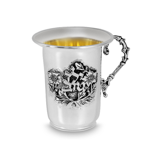 Sterling Silver Kiddush Cup Tray Ornate Design