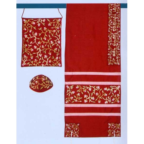 Raw Silk Embroidered Tallit Set – Pink Tree of Life