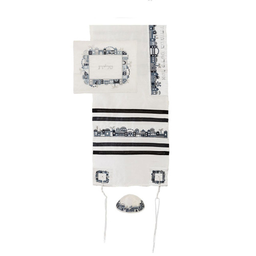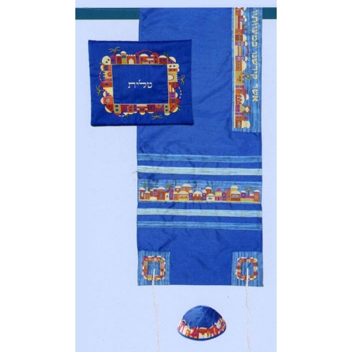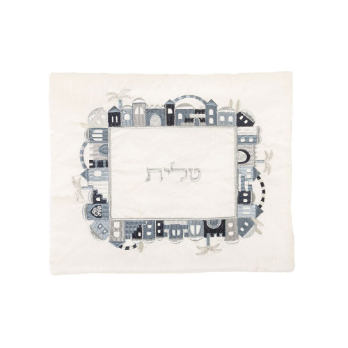 Embroidered Raw Silk Tallit Set – Blue Floral