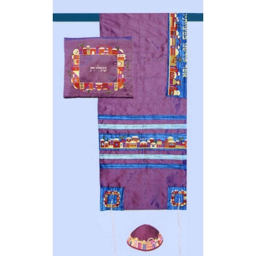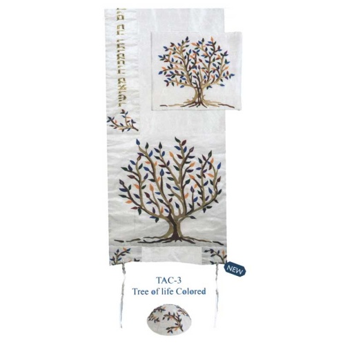 Raw Silk Embroidered Tallit Set – Colored Tree of Life