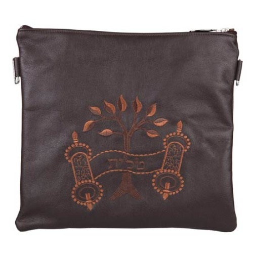Leather Tefillin Bag- Tree of Life Brown