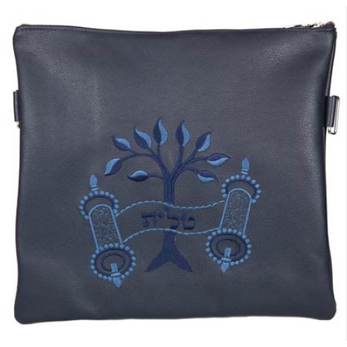 Leather Tefillin Bag- Tree of Life Navy