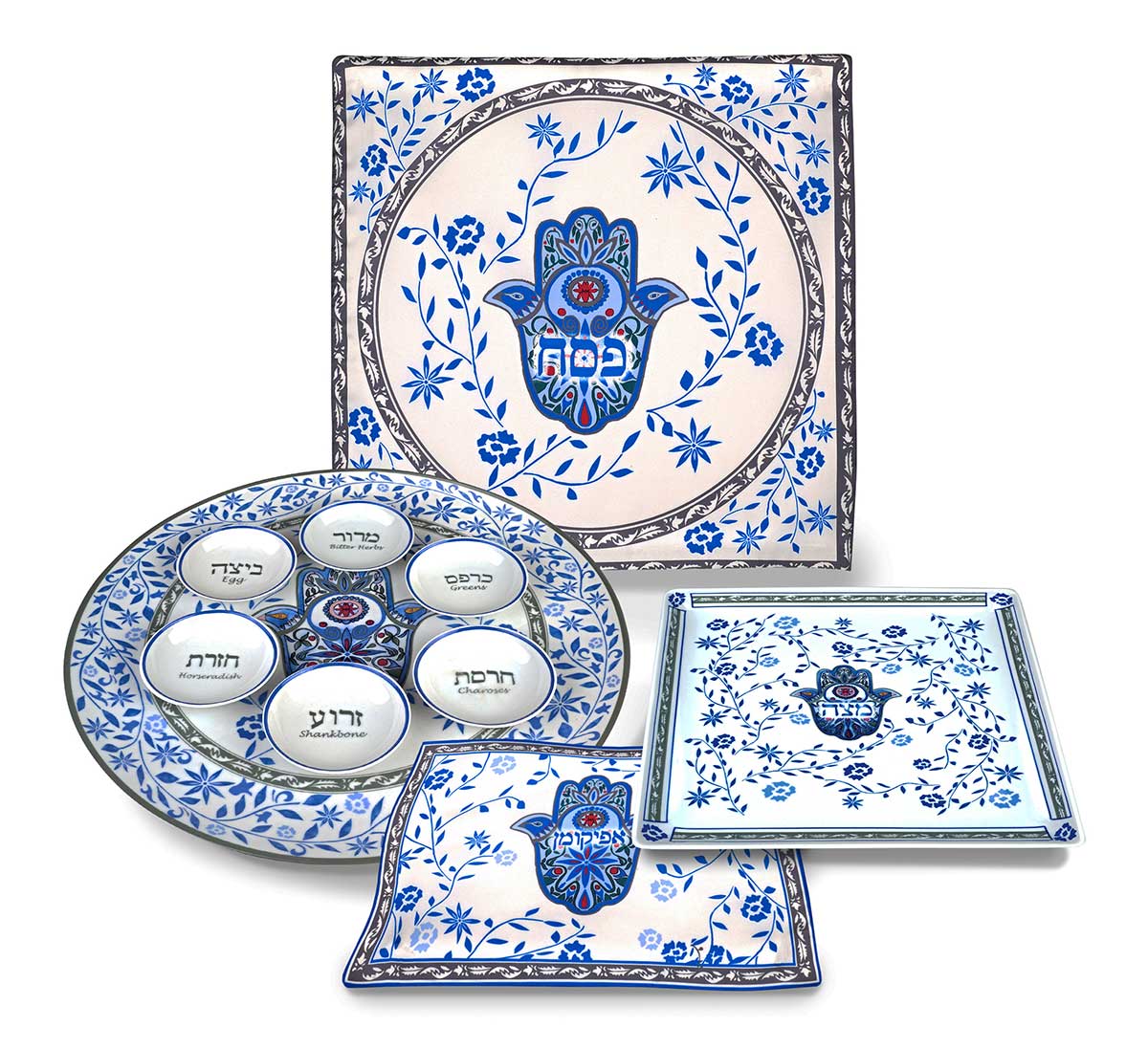 10 Piece Passover Seder Set Blue Hamsa Collection by Jessica Sporn