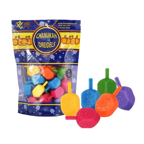100 Medium Plastic Dreidels with English transliteration – Multi Blue