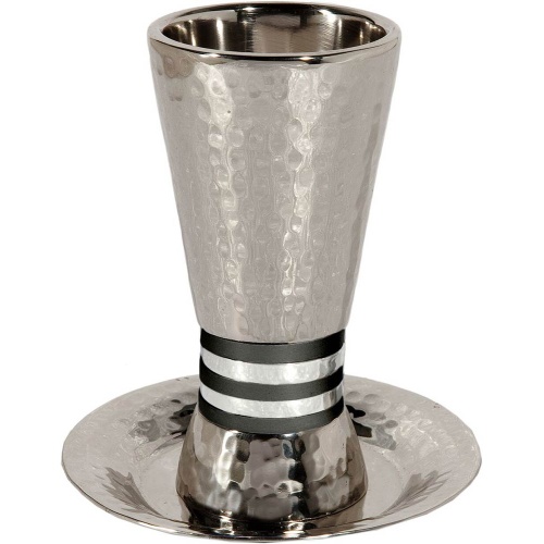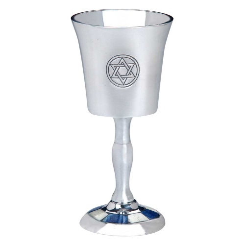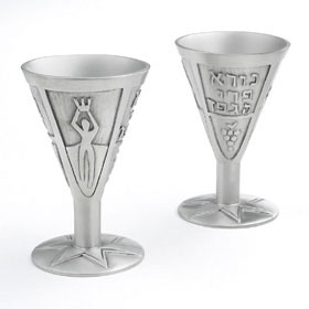 This modern interpretation of the traditional goblet is carved with six different Judaic images. Used weekly for shabbat, this kiddush cup is beautiful and contemporary. It makes a meaningful bar mitzvah or wedding gift. Cup is made of food-safe pewter and measures approx 4 x 2 1/2″. Hand Made by Emily Rosenfeld.
