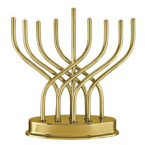 Highly polished chrome plated LED Battery Operated Menorah.The unique curves and fresh design of this Electric Menorah offers a sleek and refined take on the classic Menorah shape. This marvelous menorah will work well in both the traditional and contemporary home and office.