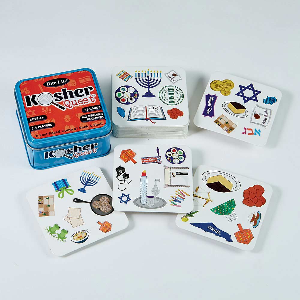Seek and thee shall find! KosherQuest is the ultimate search-and-match game that will keep families occupied for hours on end! Fun and educational, this game features Jewish Icons for Chanukah and all Jewish holidays & celebrations. Includes instructions on three ways to play, this exciting game is an instant hit for kids of all ages!