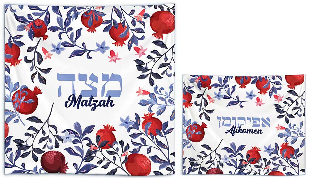 Screen Printed Silk Matzah & Afikomen Set – Pomegranate in Color
