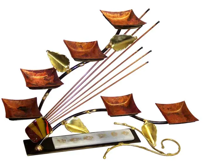 The Gary Rosenthal art collection. This Burning Bush Seder plate embodies a vibrant, organic feeling in brass, copper and brilliant glass infused with symbolism. Functional yet durable creations of art by Gary Rosenthal. 12″ high, 6.5″ wide, 13″ long.