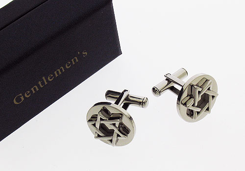 Stainless-Steel Star-of-David Cufflinks. High polished beautiful quality surgical steel (316L). Comes gift boxed. Diameter of the face measures 9/16″.