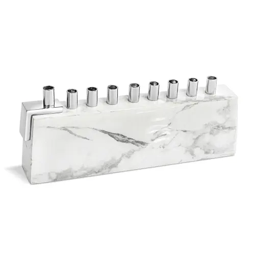Aluminum Menorah with Marble Decal – White/Silver