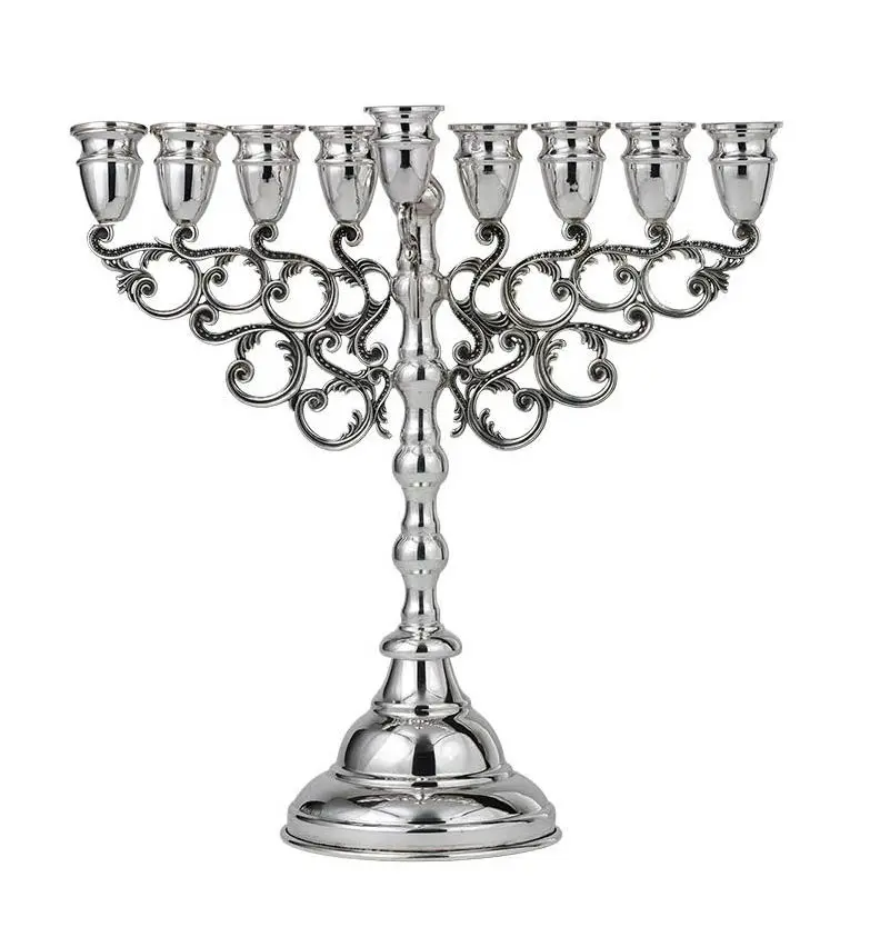 Sterling Silver 925 Menorah from the “Filigree collection”. A Traditional creation adorned with swirls of which create a filigree effect. Made in Israel by the famous Hadad bros factory in Bnei Brak. Measures: 10.5″ High. Weight: 350 grams. This Menorah can be used with candles or with oil cups. Personalization: You will be given the option to engrave a custom text as you proceed to checkout.