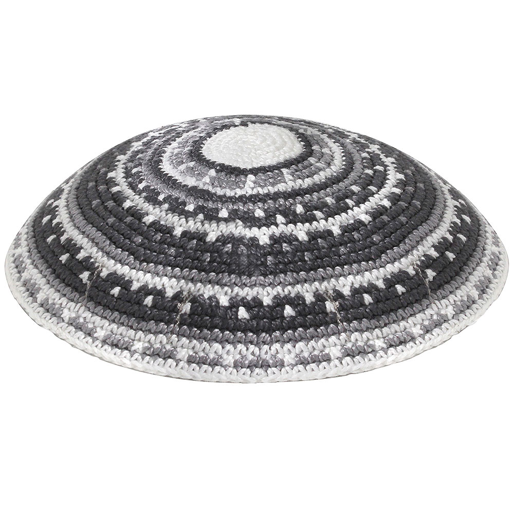 Personalized Knit Kippot, Traditional grey and white design.